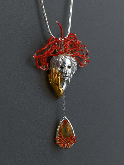 Bijou en argent, or et émail avec pierre citrine - version en or jaune, en or blanc ou en platine sur demande