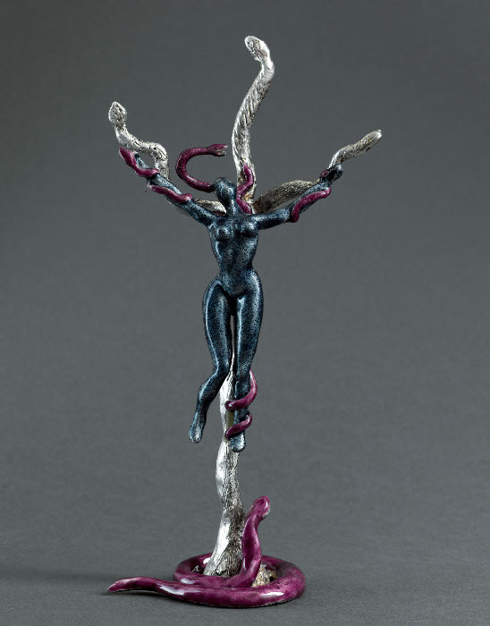 Bijou en argent émaillé à porter ou à poser sur un socle en métal émaillé - version en or jaune, en or blanc ou en platine sur demande